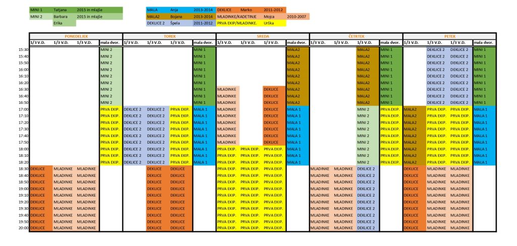 skupina DEKLICE 1 in 2 letnik 2011 in 2012 skupina MLADINKE / KADETINJE letnik 2007 in 2010